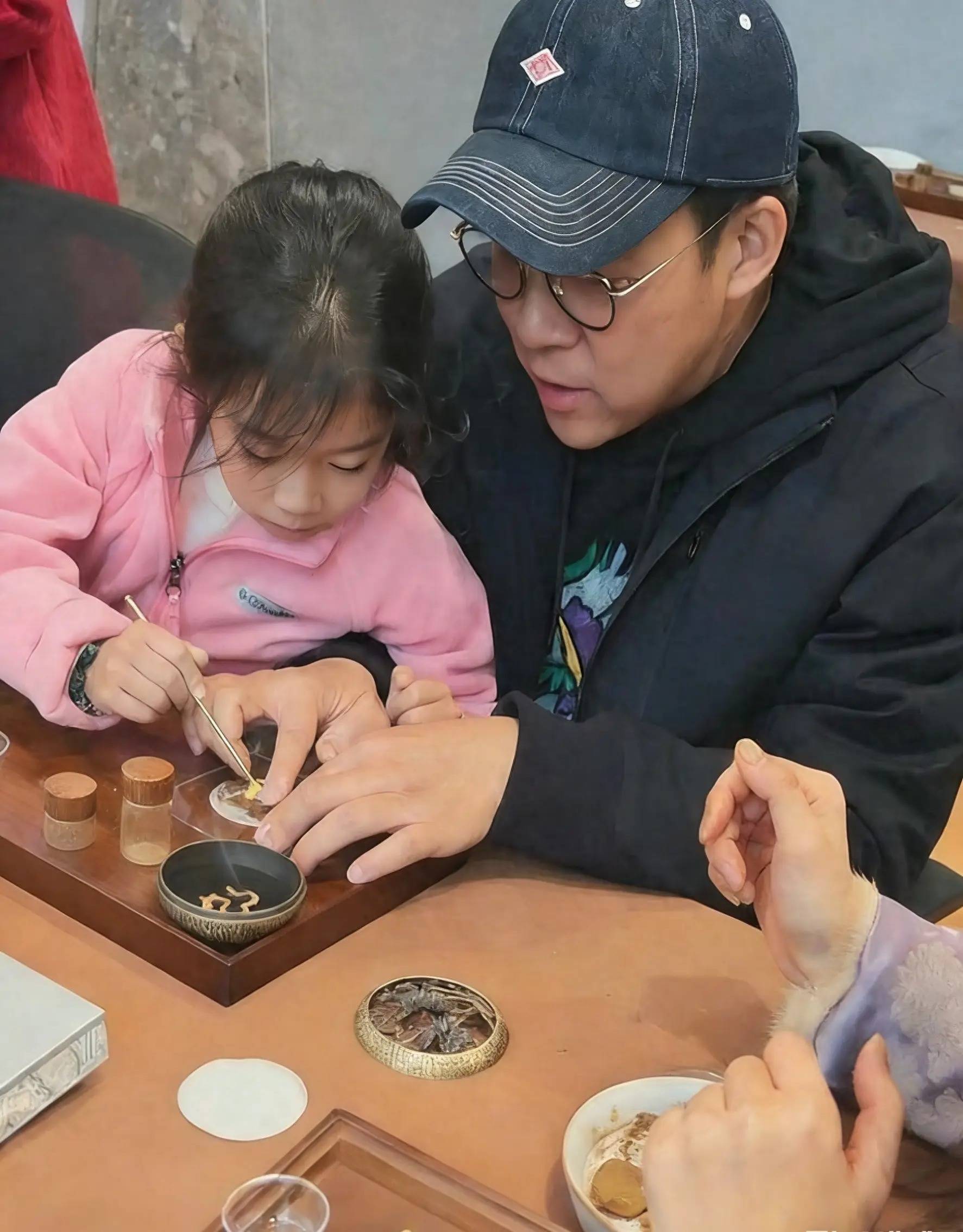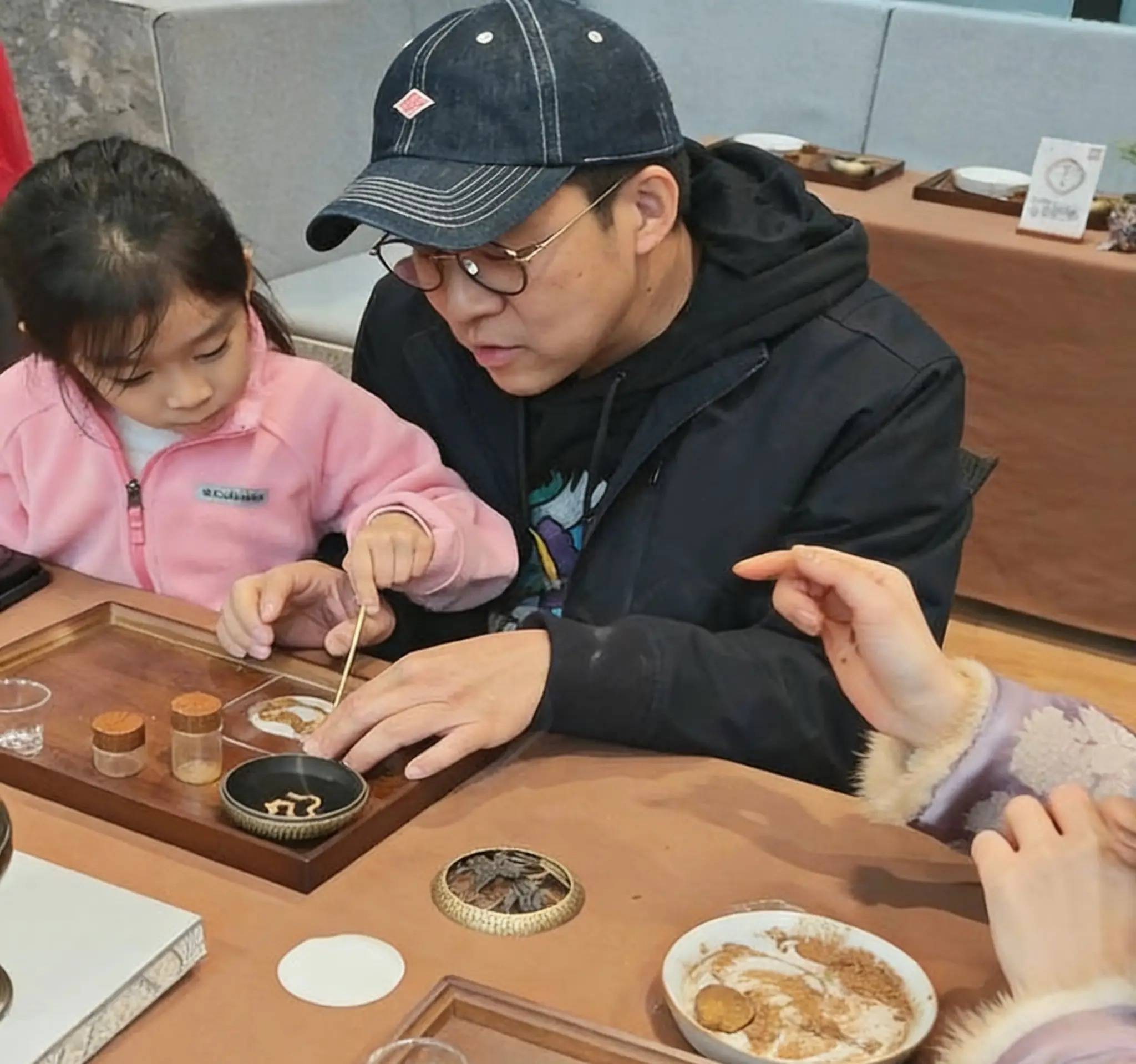 然而当镜头转向他与孩子们的互动时,这些光环都退居其次。他与小女儿一起制香的画面中,专注的眼神和温柔的动作,展现了一个普通父亲的温情面。